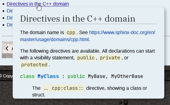 Sphinx-Preview shows small previews for selectable links in HTML documents.