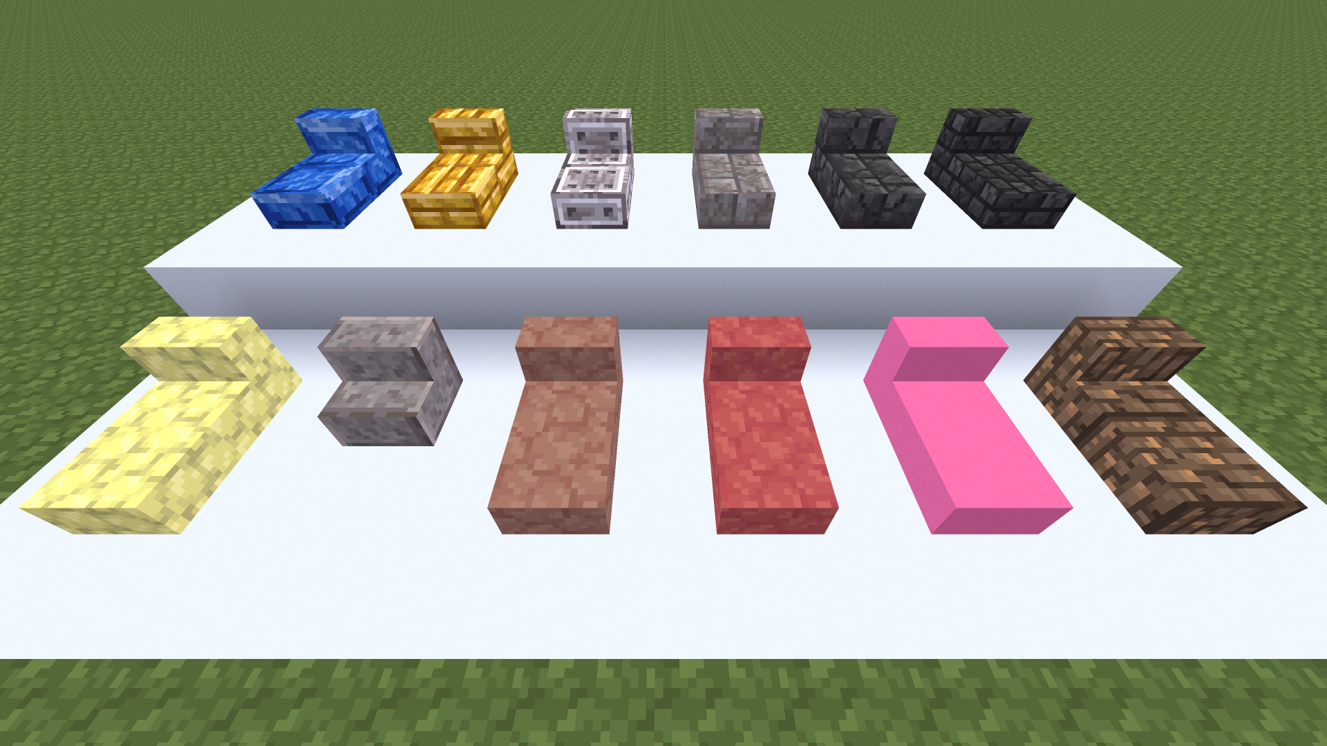 Stairs and slabs unique to Mineclonia, displayed together.¶